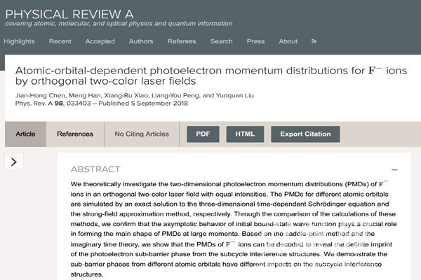 陈建宏博士在A2类权威期刊Phys.Rev.A发表论文。