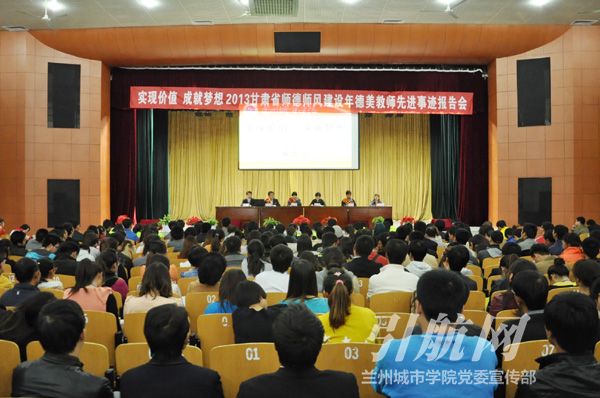 10月19日,以“实现价值、成就梦想”为主题的2013甘肃省师德师风建设年德美教师先进事迹报告会在点点官网举行。省教育厅副厅长王萍出席并讲话,点点官网党委常委、副校长马振林致辞,来自全省各地在兰州参加国培计划置换研修和省培项目短期集中培训的中小学、幼儿园教师以及特岗教师近1300人聆听了报告。