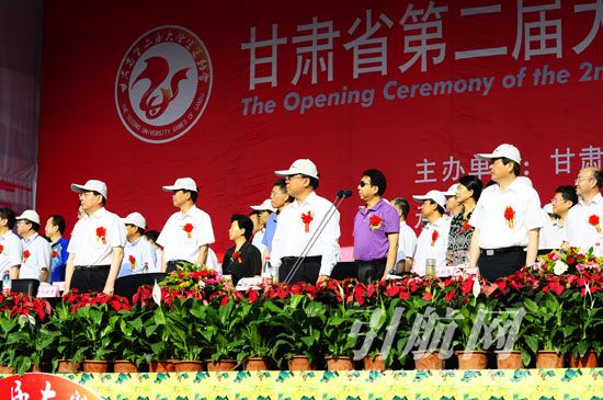 开幕式上,省教育厅厅长白继忠同志宣读中国大学生体育协会贺信。国家体育总局网球管理中心副主任李玲蔚同志致辞。甘肃省委副书记、省长刘伟平同志讲话。甘肃省委书记、甘肃省人大常委会主任陆浩同志宣布甘肃省第二届大学生运动会开幕。
