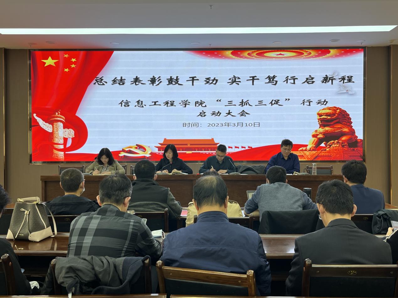 为深入贯彻落实学校“三抓三促”行动方案,全面开启学院2023年重点工作,3月10日,信息工程学院召开 “三抓三促”行动启动大会。会议由学院党委负责人主持,学院负责人及全院教职工共80余人参加会议。