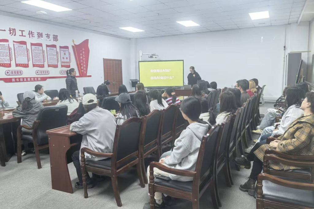 讲座中,何孟姣结合2025年人工智能行业发展趋势,对DeepSeek、Kimi Chat、通义千问、文心一言、智谱清言、豆包等主流AI工具进行了系统介绍,分析了各类工具的技术特点、功能优势与适用场景。实战教学环节围绕AI文生图、AI数据分析、AI文本生成三个模块展开。AI文生图模块讲解了提示词设计、风格参数调整与图像优化技巧,演示了图像生成、修复、风格迁移等实用功能;AI数据分析模块以实际数据为例,展示了数据清洗、自动统计、可视化图表生成与结果解读的全流程操作;AI文本生成模块聚焦论文写作、简历优化、社交媒体文案创作等场景,介绍了内容规范与优化方法。讲座还介绍了软件通数据库的资源体系与使用方法,为师生课后自主拓展学习提供支持。现场互动交流踊跃,部分师生进行了实操演练。