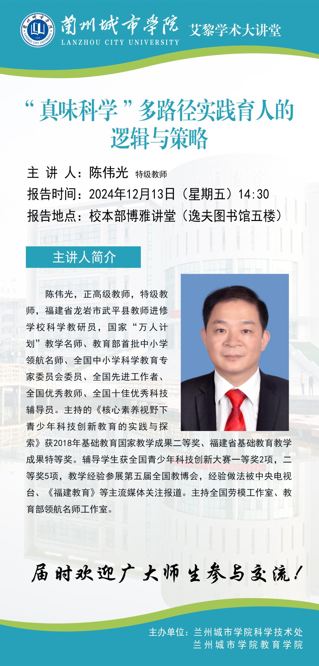 应科学技术处和教育学院联合邀请,国家“万人计划”教学名师陈伟光将来点点官网作学术报告。具体事宜公告如下: