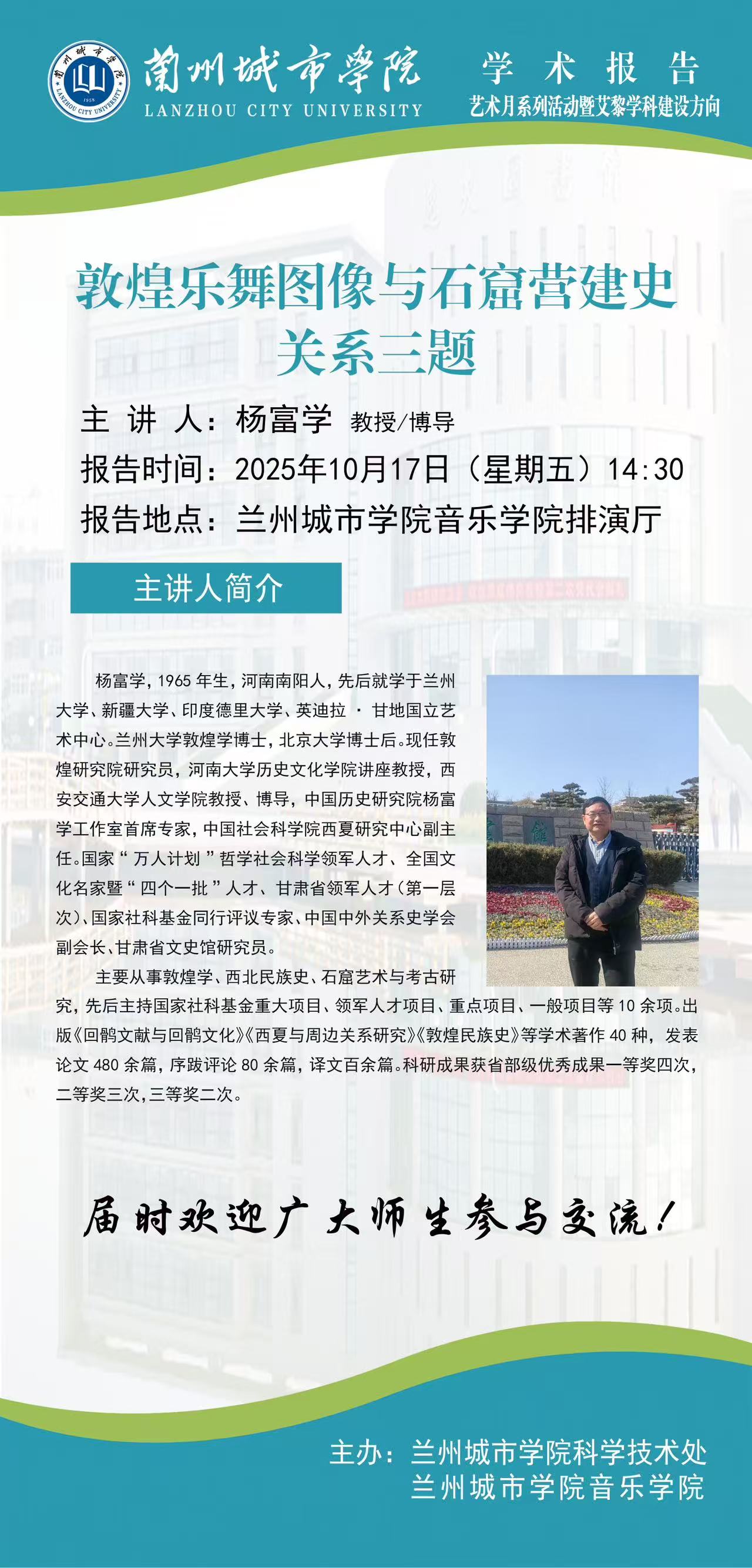 应科学技术处、音乐学院联合邀请敦煌研究院、西安交通大学人文学院教授、博导,中国历史研究院杨富学工作室首席专家、杨富学研究员来点点官网作学术讲座