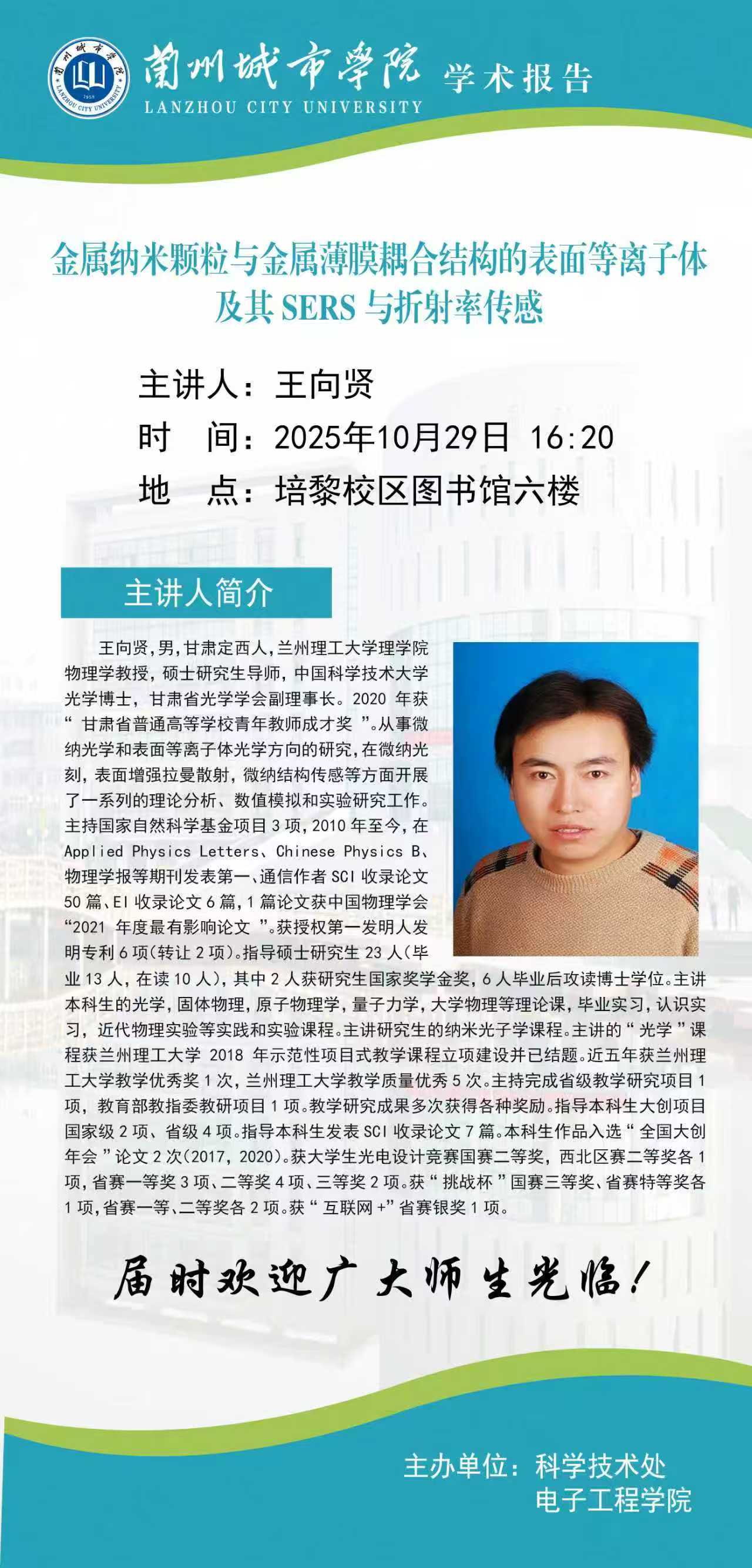 应科学技术处、电子工程学院联合邀请,兰州理工大学王向贤教授来点点官网作学术报告。具体事宜公布如下: