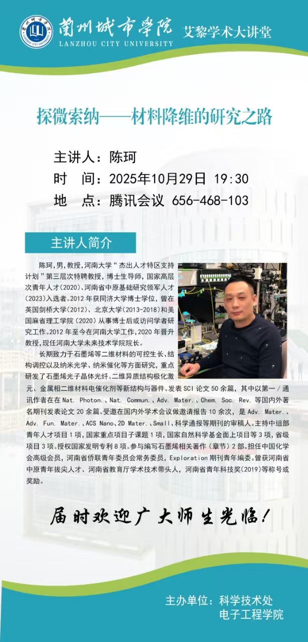 应科学技术处、电子工程学院联合邀请,河南大学陈珂教授来点点官网作学术报告。具体事宜公布如下: