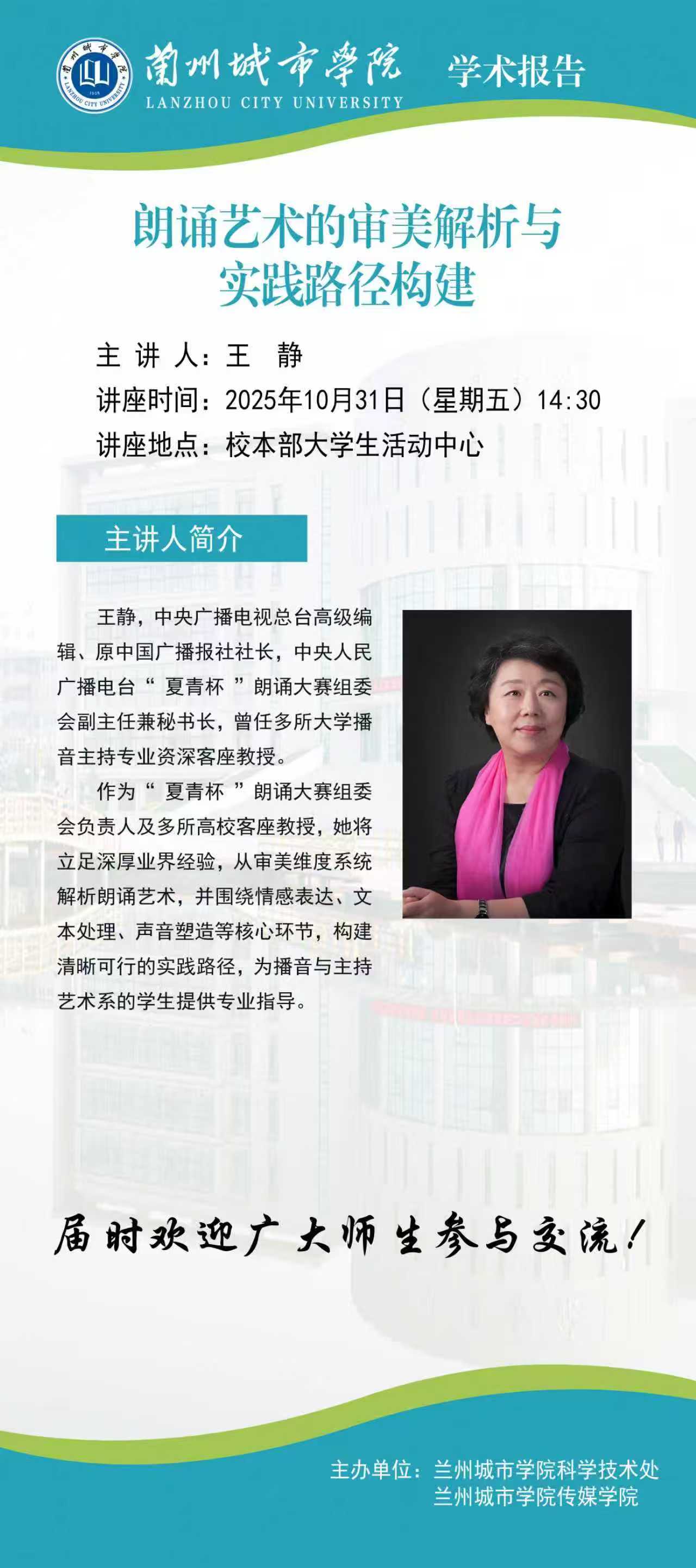报告题目:朗诵艺术的审美解析与实践路径构建