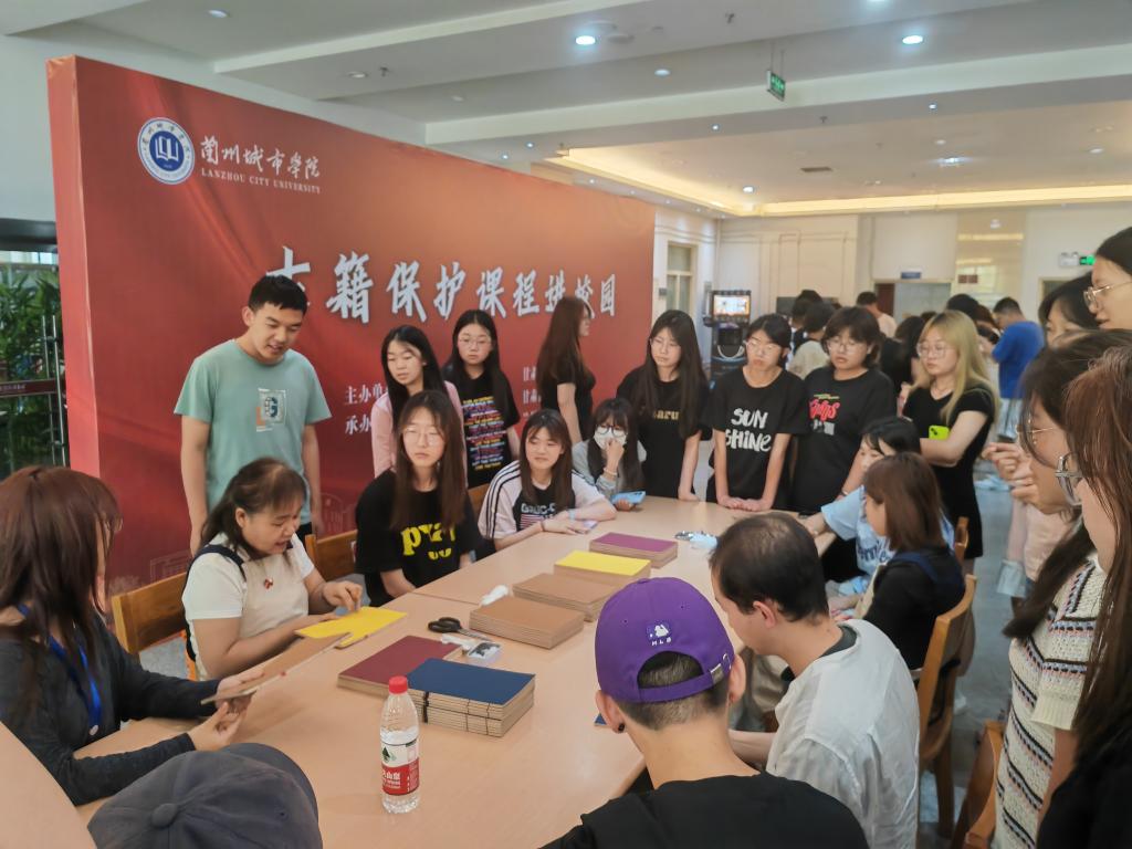 甘肃省古籍保护中心相关专家为师生详细介绍了古籍保护和古籍装帧修复的专业知识,并演示了雕版印刷、线装书缝订、瓦当拓印等专业技术。现场师生体验线装书缝订、雕版印刷等技艺,触摸纸张,感受墨香,品味典籍之美。