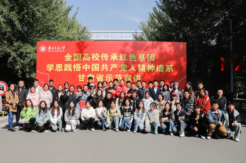 为深入实施时代新人铸魂工程,引导广大学生坚定理想信念,厚植爱国情怀,10 15 日上午,宣传、统战、学工、团委等部门及马克思主义学院负责人、师生代表50余人前往兰州交通大学参加全国高校“传承红色基因 学思践悟中国共产党人精神谱系”甘肃省示范宣讲活动。