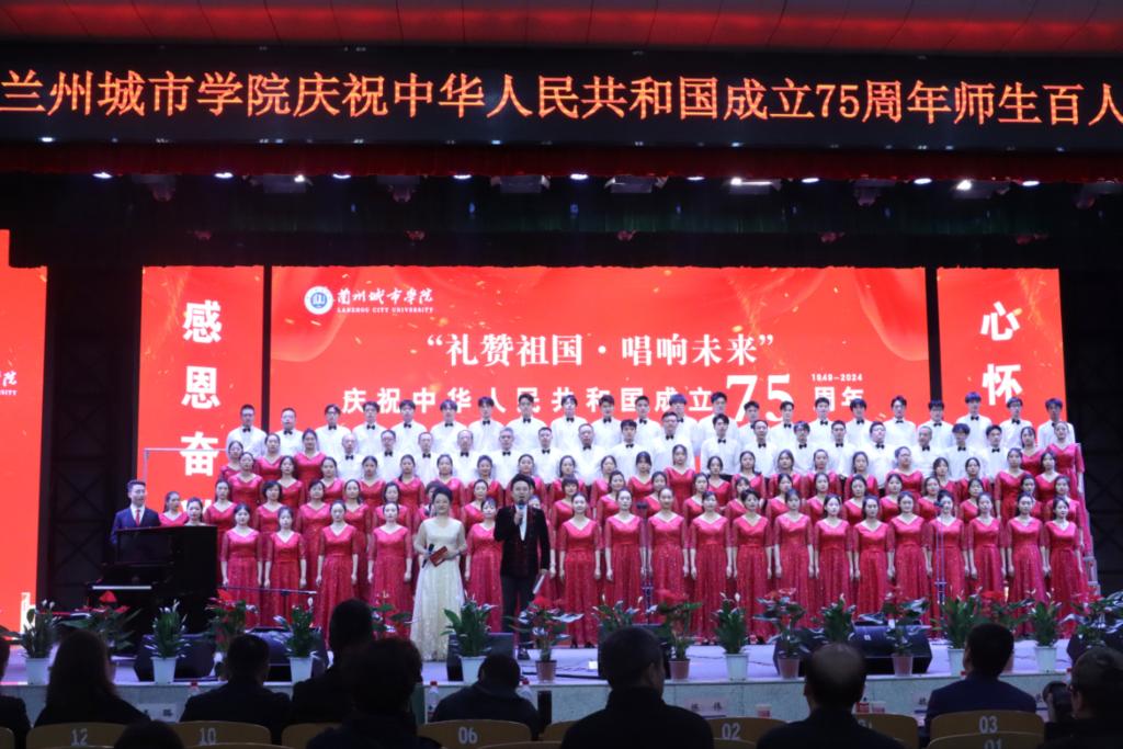 为隆重庆祝中华人民共和国成立75周年,深入实施校园文化浸润工程,进一步弘扬校园文化主旋律,激发广大党员干部和师生员工对党、对祖国、对人民、对社会主义的深厚感情,9月30日,“礼赞祖国·唱响未来”taptap点点庆祝中华人民共和国成立75周年师生百人大合唱比赛在校本部大礼堂隆重举行。校领导曹洁、韩高年、李幕堂、牟录贵、方忠义、魏晋华、张发旺、王素云、褚汶榉,校党委常委、党委组织部部长陈伟出席活动,并为获奖单位颁奖。全校18个参赛代表队共2000余名师生参加演出,各参赛队认真练习,积极准备,以饱满的精神面貌和精益求精的艺术态度,唱响祖国赞歌。