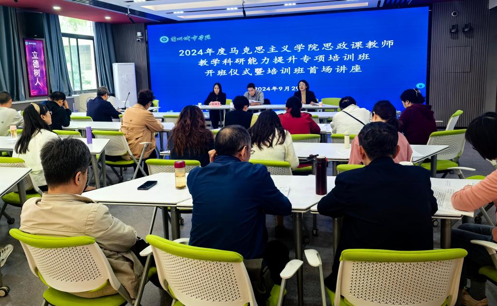 为学深悟透习近平新时代中国特色社会主义思想,提升思政课教师的能力水平,9月29日下午,马克思主义学院思政课教师教学科研能力提升专项培训班在VR体验中心开班,学院领导班子和全体思政课教师参加开班式。