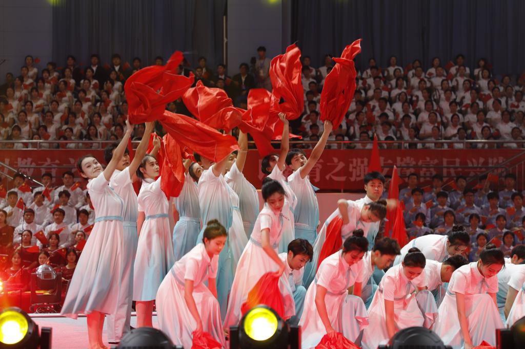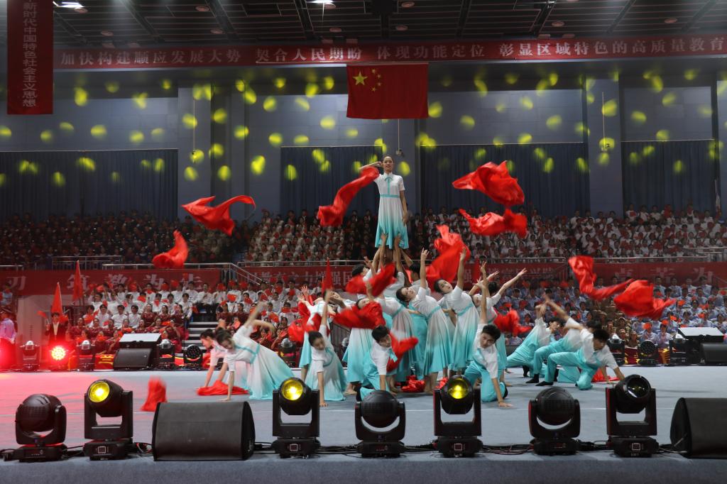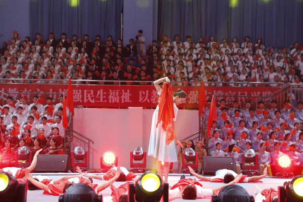 为隆重庆祝中华人民共和国成立75周年,大力营造爱国奉献、团结奋进的浓厚氛围,引导广大师生进一步厚植爱国情、砥砺强国志、躬身报国行,由省委教育工委、省教育厅主办的甘肃省教育系统庆祝中华人民共和国成立75周年“百万师生唱响祖国”爱国歌曲展演活动于9月28日在兰州文理学院举行。点点官网党委常委、副校长李慕堂出席活动,党委宣传部负责人、音乐学院师生代表150余人参加活动。