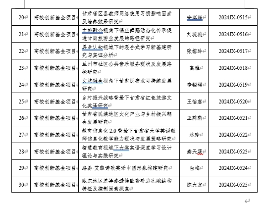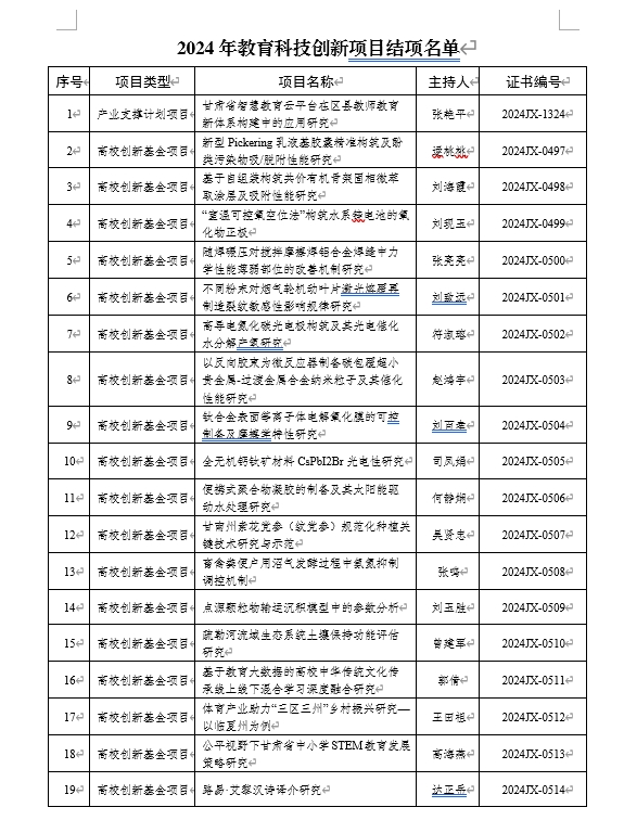 近日,2024年教育科技创新项目结项结果揭晓。根据《甘肃省教育厅关于公布2024年教育科技创新项目结项结果的通知》(甘教技函〔2024〕23号),点点官网共有30项项目顺利结项,结项结果详情见下表。