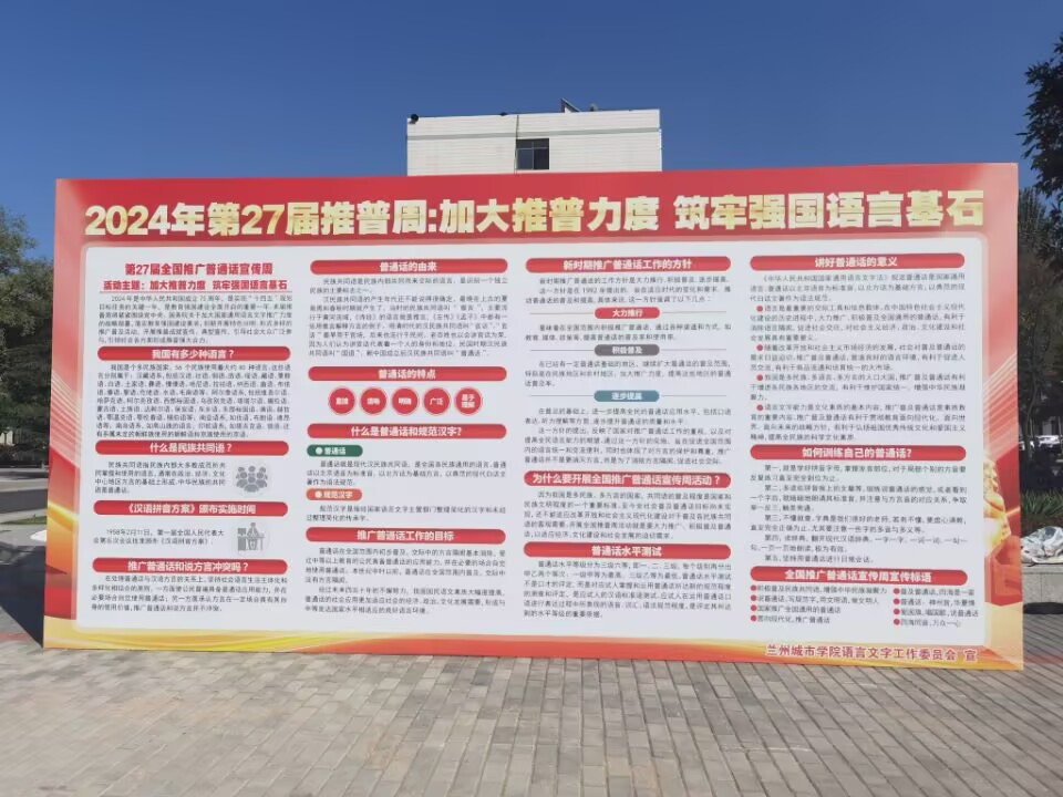 9月16至22日是第27届推普周,本届推普周学校紧紧围绕“加大推普力度,筑牢强国语言基石”主题内容,结合中华人民共和国成立75周年以来语言文字的发展历程,开展了特色分明、形式多样的普通话推广宣传工作。