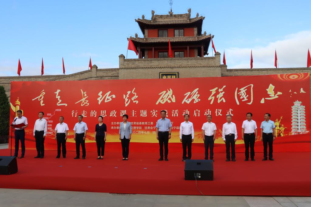 7月20日上午7点,“重走长征路 砥砺强国志”行走的思政课主题实践活动启动仪式在红军会宁会师旧址正式举行。活动期间,400余名师生通过瞻仰会师塔、向红军英烈敬献花篮、共上主题微思政课、寻访长征路上的红色足迹、急行军、红色歌曲大家唱等主题实践活动,深刻感受当年中国工农红军二万五千里长征的艰难历程,带着感情重温革命历史、缅怀革命先烈,传承红色基因、汲取奋进力量。