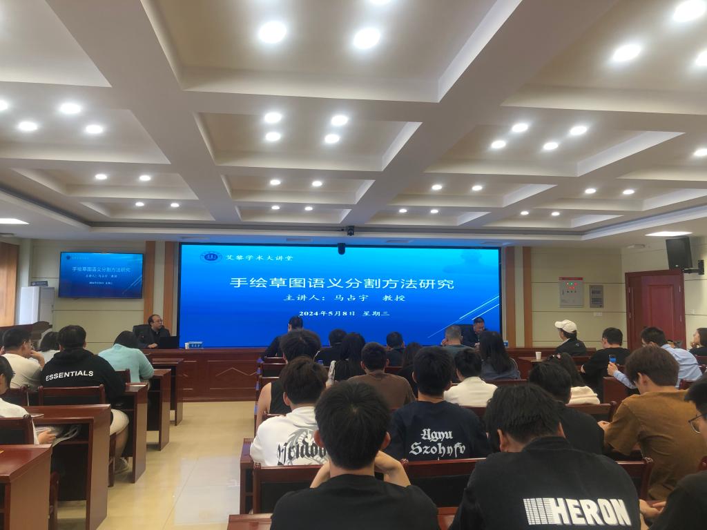 报告聚焦学术研究前沿,内容丰富,数据详实,师生受益匪浅。参会师生就平行网络架构的优点、人工智能对绘画艺术的影响、神经网络训练、文字生成图像的二次编辑等问题与马占宇进行了互动交流。与会教师纷纷表示,通过此次讲座,了解了更多关于手绘草图语义研究的专业知识,开阔了学术视野,收益良多。