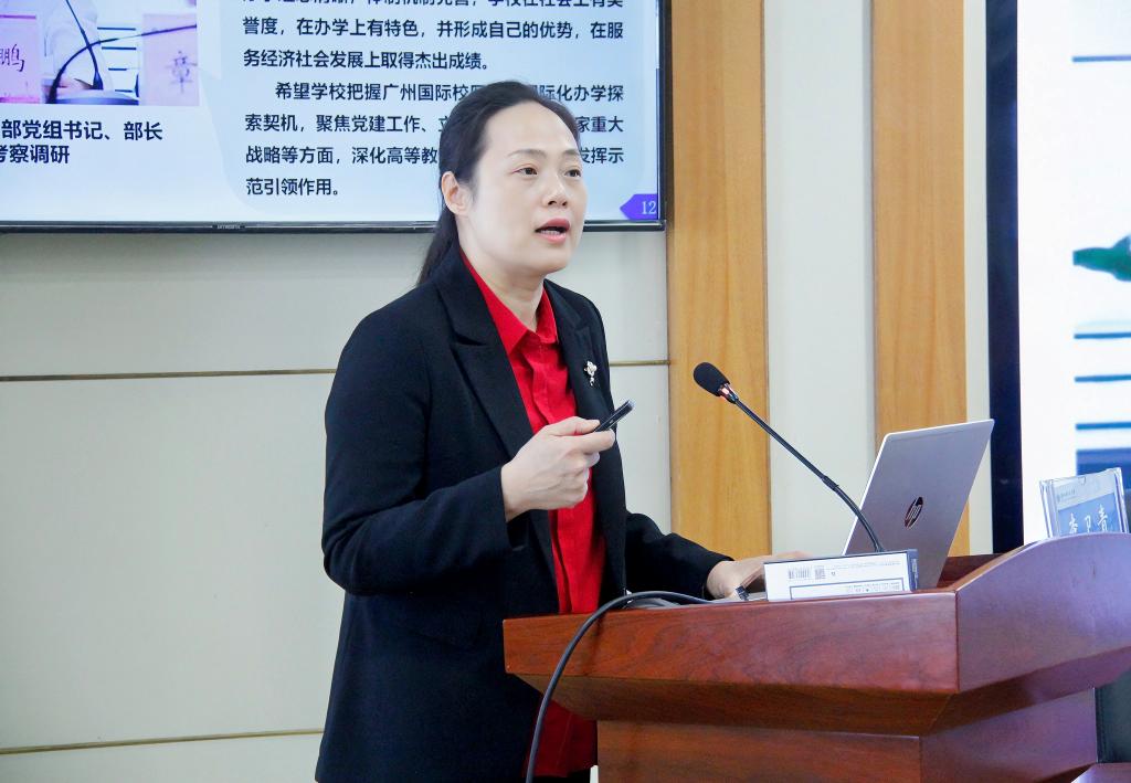 韩高年指出,李卫青以鲜活的发展实例,对华南理工大学的办学历史、人才培养模式、优势特色和发展规划进行了介绍。华南理工大学“融入发展促发展”的办学理念、拔尖创新人才培养的“华工模式”,全部新工科学院的国际化校区、粤港澳大湾区国际化教育改革的个案试点,均对点点官网管理干部在观念、认知上带来了很大触动和启发,对我们谋划学校高质量发展提供了经验范例。他强调,全校上下要充分发挥学校地方办学优势,积极争取省、市、区对学校发展的支持,不断改善办学条件,持续打造一流育人环境;要加强师资队伍建设,引进优质师资力量,提前谋划解决教师老龄化问题;要优化人才培养模式,提升学生创新创业能力,完善一站式社区建设,拓宽国际办学路径;要服务地方经济发展,建立服务地方经济发展事项清单,积极走访企业,推进校企合作;要进一步提高思想认知,汲取先进理念,拓宽办学视野,不断提升育人质量和办学水平。
