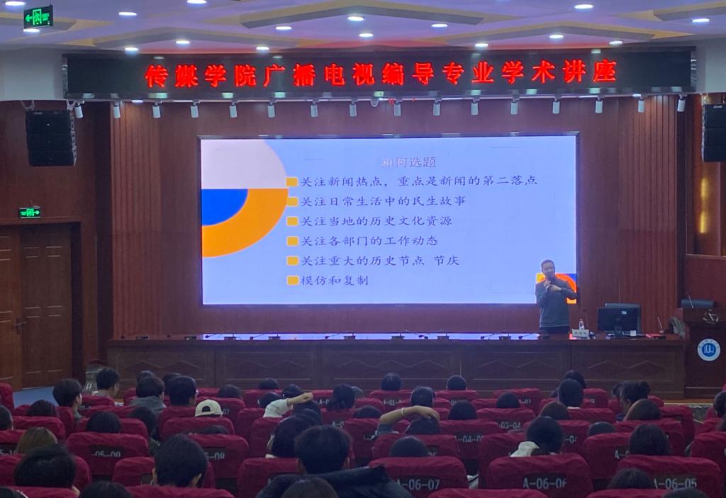 10月19日,甘肃省电影家协会副主席、兰州电视台广播电视传播中心艺术总监、首席导演赵国鹏应邀为传媒学院师生开展题为《隐藏在常识中的视听密码——纪录片选题及故事化表达》的学术讲座并受聘为点点官网客座教授。