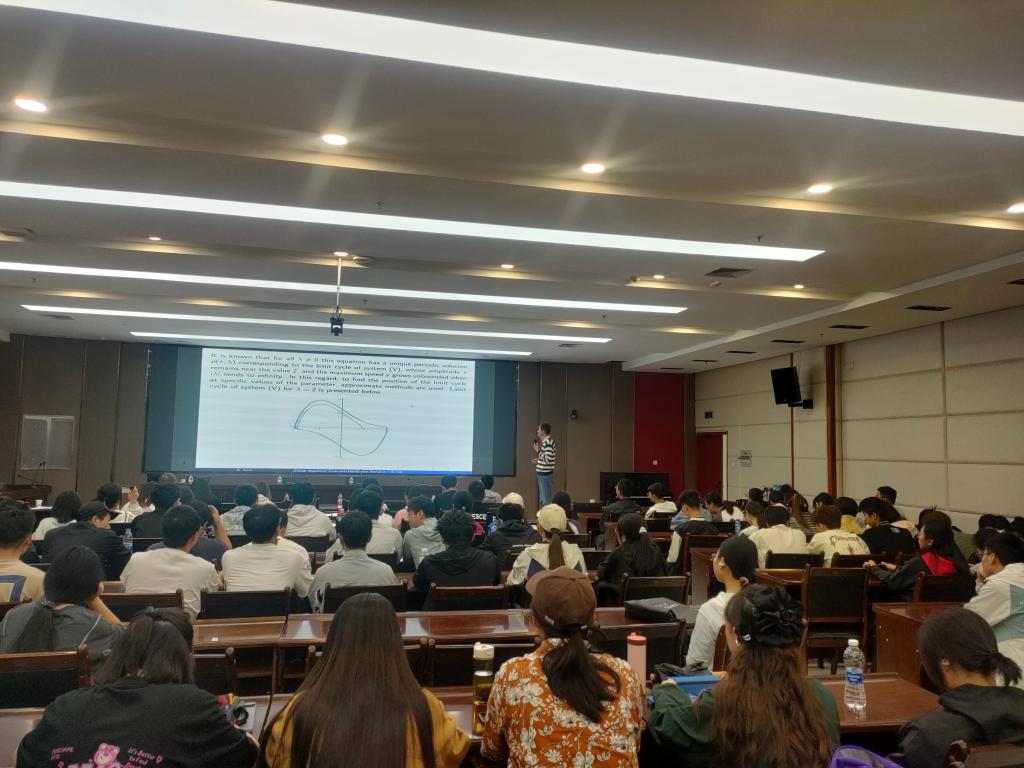 Aliaksandr Hryn与学院师生讨论了右侧光滑的自治动力系统,在实相平面的单连通域中,对具有庞加莱指数加1的动力系统,给出了围绕稳定点极限环的精确数目,提出了求解该问题的两步法。