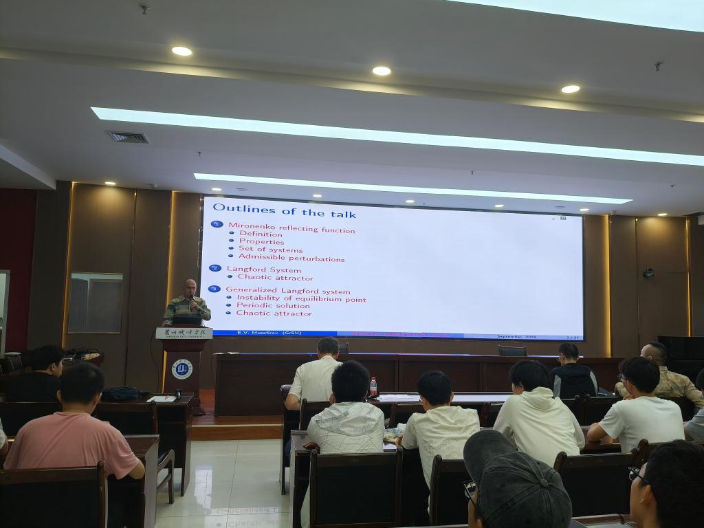9月19日下午,白俄罗斯格罗德诺杨卡.库帕拉国立大学Aliaksandr Hryn教授、Eduard Musafirov教授在培黎图书馆6楼学术报告厅分别作了“Rayleigh微分自治系统极限环横向曲线研究”和“Mironenko反射函数法研究常微分方程组”的两场学术报告。电子工程学院和信息工程学院120余名师生参加了该报告。