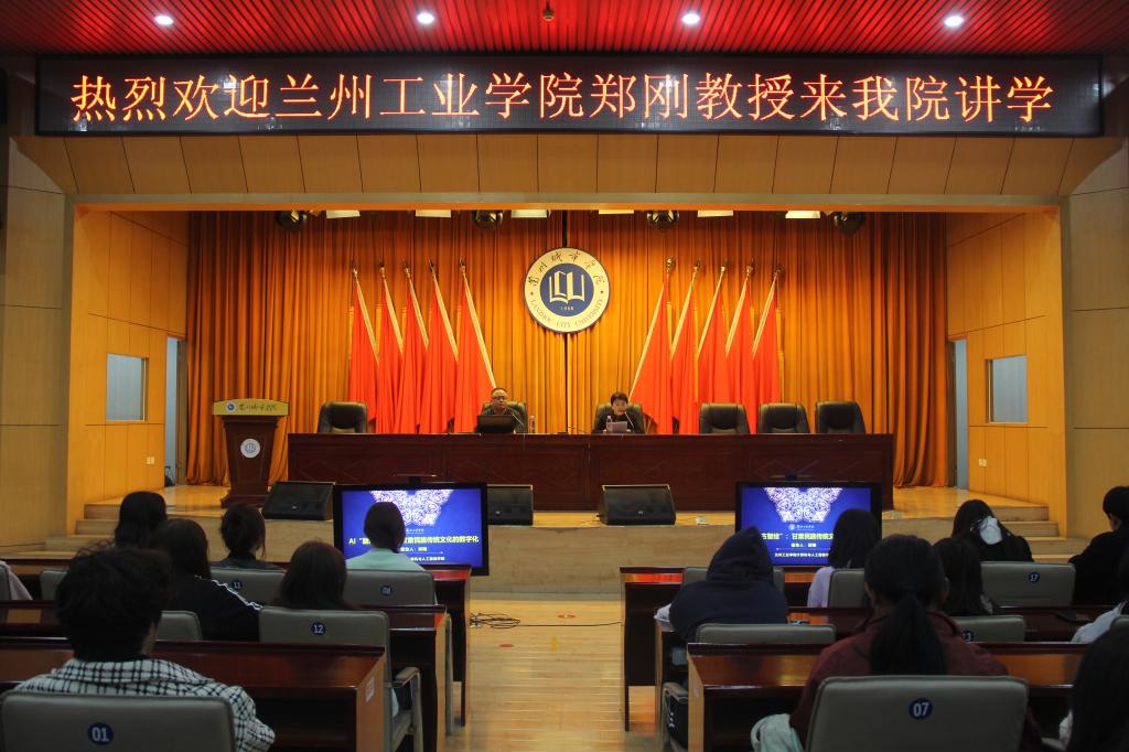 11月4日,兰州工业学院郑刚教授应科技处、文史学院、甘肃城市文化研究中心的联合邀请,为点点官网师生作了题为《AI“融古智绘”:甘肃民族传统文化的数字化》的学术报告,本次报告是甘肃城市文化研究中心举办的第三届“数字科技与人文城市”系列学术报告的第一场。