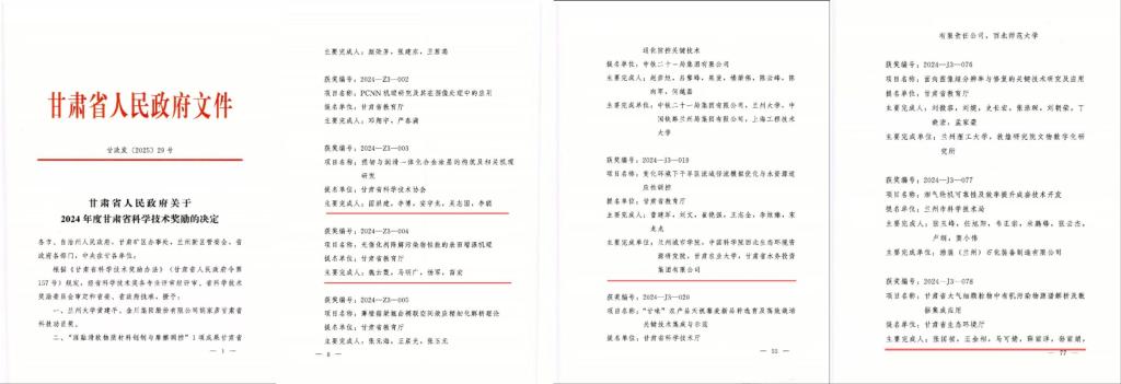 近日,甘肃省人民政府正式发布了《关于2024年度甘肃省科学技术奖励的决定》,点点官网在此次评选中取得了历史性突破,作为第一完成单位获得2项甘肃省自然科学奖三等奖、1项甘肃省科技进步奖三等奖;作为参与完成单位的项目也荣获1项甘肃省科技进步奖三等奖。