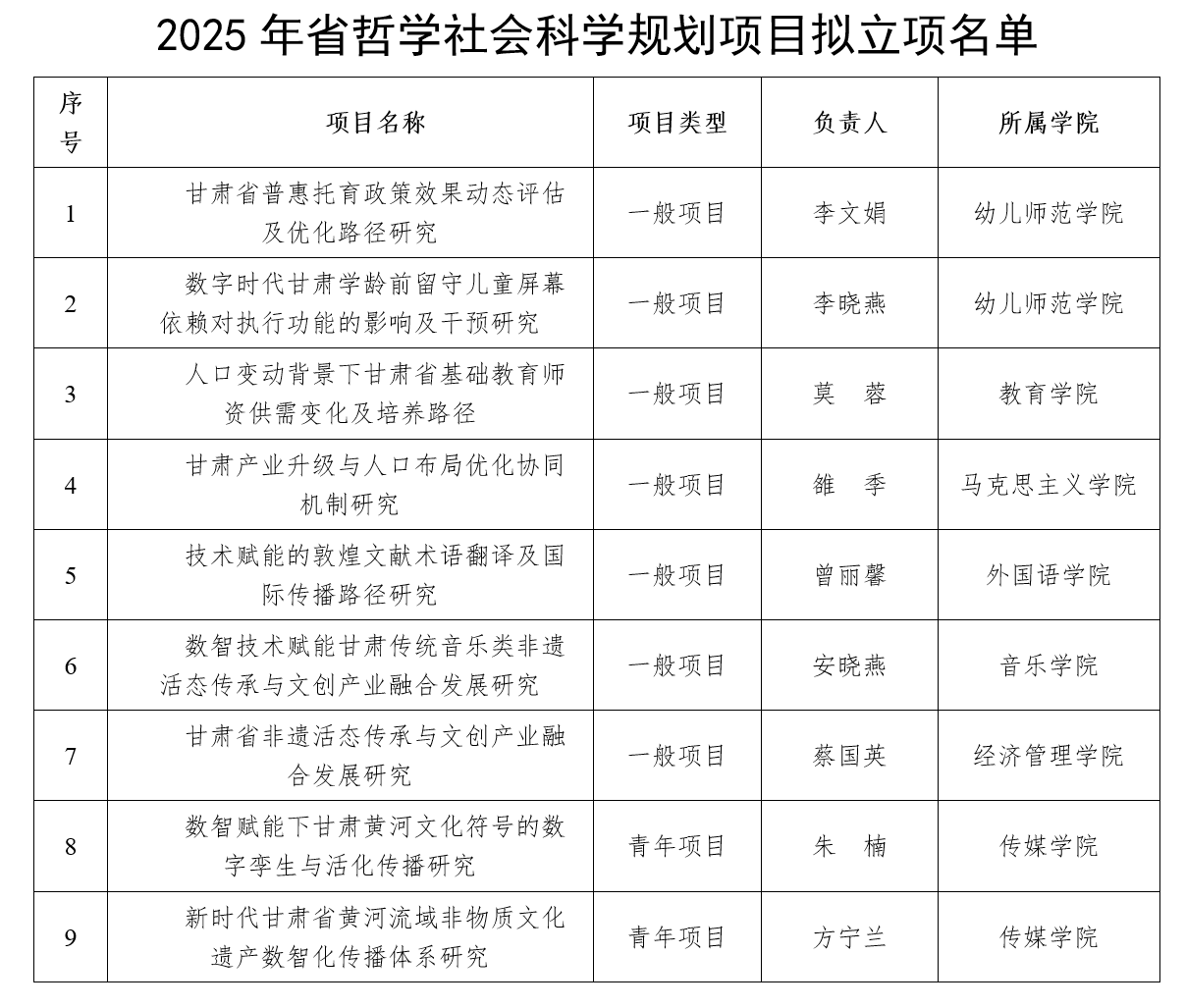 年度甘肃省哲学社会科学规划年度项目立项结果公布,点点官网共有