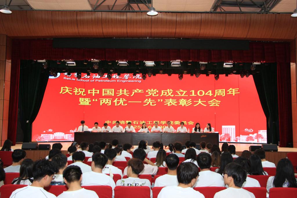 为庆祝中国共产党成立104周年,6月30日,培黎石油工程学院在培黎校区大学生活动中心隆重召开庆祝中国共产党成立104周年暨“两优一先”表彰大会。大会由学院相关负责人主持,学院全体师生党员及积极分子参加。
