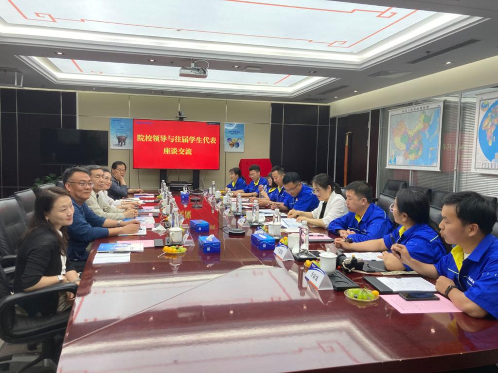在特变电工新疆新能源股份有限公司(西安分公司)校友座谈会上,培黎石油工程学院新能源科学与工程专业毕业的4位优秀校友踊跃发言,纷纷表示非常感谢母校的培养,立足岗位,扎实工作,为母校增光添彩。李慕堂对校友的分享表示高度赞赏,并邀请他们回母校为更多人分享成长成才故事,激励师弟师妹们增强自信,以积极的心态面对学习和就业。